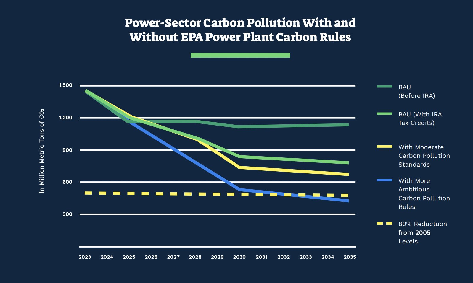 The potential to reduce carbon pollution from the power sector using moderate and ambitious EPA power plant rules in combination with IRA tax credits. (From our paper with NRDC, Powering Toward 100 Percent Clean Power by 2035)