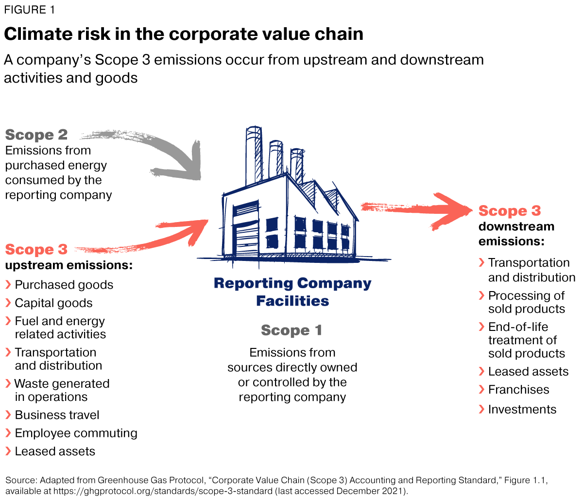 Scope 3 emissions can have serious implications for the long-term security of investors’ assets. Physical risks (like floods, hurricanes, and wildfires) and transition risks (like technological breakthroughs, or a federal policy encouraging a transition away from fossil fuels) can have effects up and down supply chains. The potential for economic, political, technological, or social change driven by a desire to reduce emissions—such as rising customer demand for zero-emission forms of transport—can be a big liability for an oil company with a large share of Scope 3 emissions that come from the burning of oil to drive a car or fly a plane.