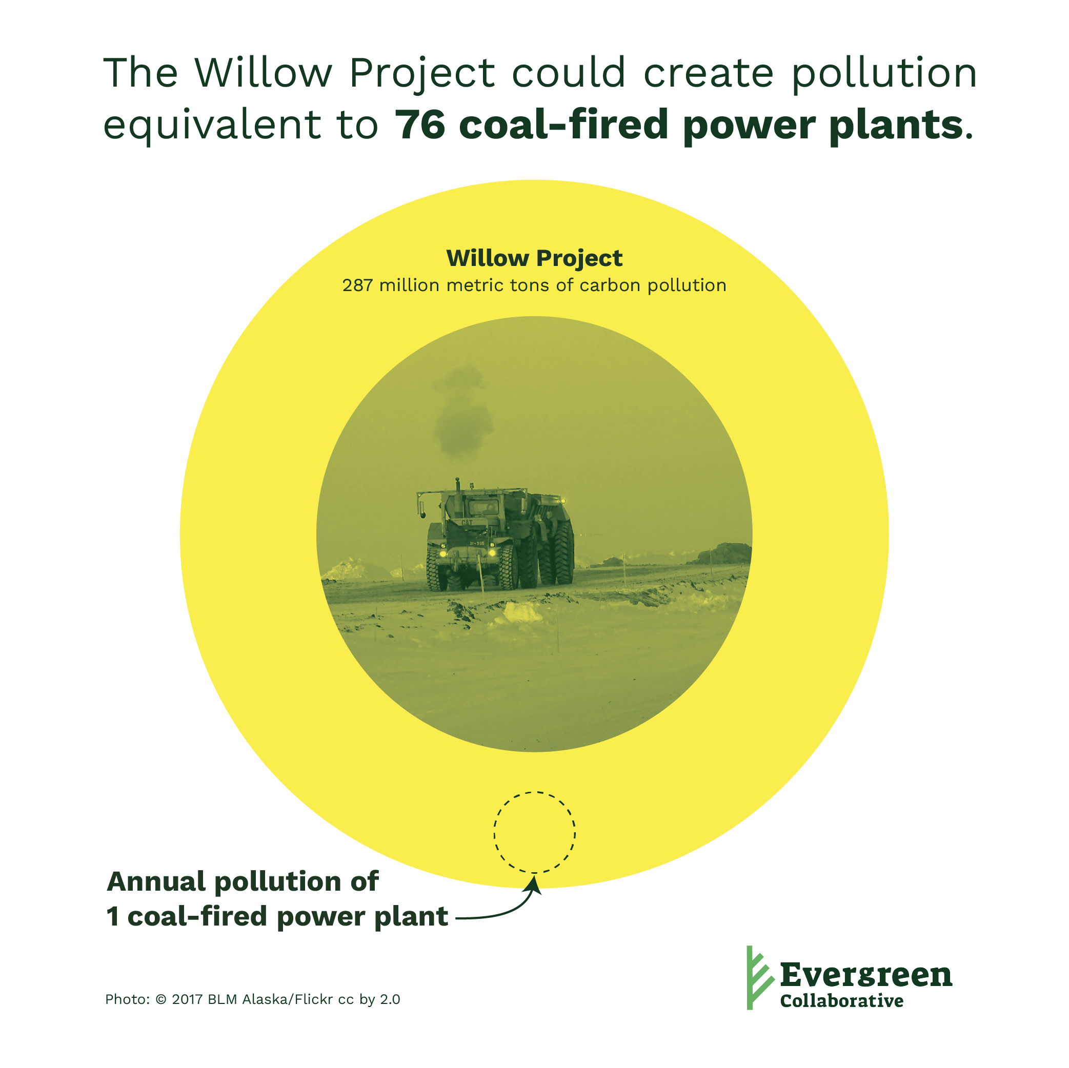 Over the next 30 years, the Willow Project could pump between 278 and 287 million metric tons of greenhouse gas pollution into our atmosphere. That’s equivalent to the annual emissions of 74 to 76 new coal fired power plants—or about a third of all coal plants across the country.